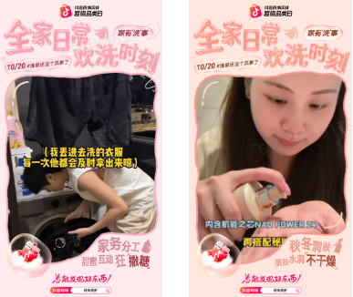 10月20日,#谁家还没个洗事了 话题协同@王梓陌 @金圣一 @皮晶姐姐 等达人发起,最高登抖音种草榜TOP3&总榜TOP34,活动主话题#秋冬洗护 #我家准备好过冬了累计VV破1.8亿,汇聚秋冬洗护趣事,通过记录家庭洗护场景中有趣、有料、有共鸣的“喜”事,用真实故事传递生活幸福感。