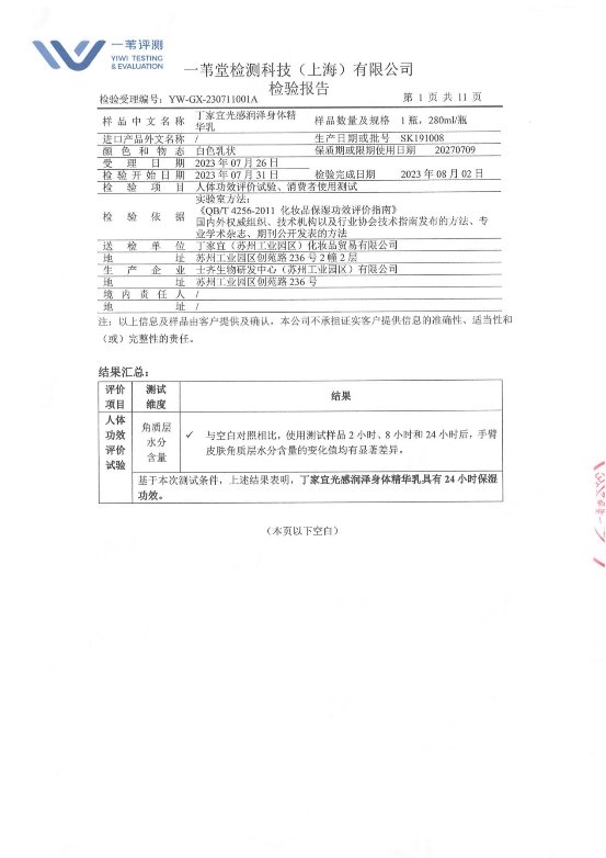 经第三方专业检测机构认证(检测机构:一苇堂检测科技(上海)有限公司,报告编号:YW-GX-23071101A),该身体乳的保湿功效具有数据实证:使用2小时后,肌肤含水量较未使用时提升121%;使用8小时后,肌肤含水量较未使用时提升116%,真正实现24小时长效保湿。即便处于空调房、寒风等干燥环境中,也能持续为肌肤注入水润活力,达成 “一次涂抹,全天无忧”的强效保湿力。
