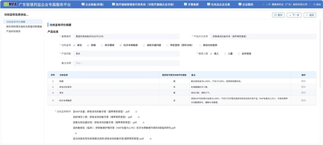 同时,备案后台显示该产品已上传全套功效佐证材料,包括美白专项测试报告、7 天色阶提升消费者测试数据、防渍验证报告、16 小时长效清新检测报告,以及两项分别涉及牙齿护理组合物和含酶制剂牙膏的发明专利证书,充分证明功效宣称的真实性。其中,“清洁” 功效因符合《牙膏原料管理规定》中 “免于功效评价” 的要求,备案时标注为 “免提交评价报告”,其余功效均按要求提供了专项报告。