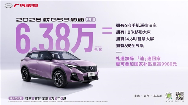 临近春节,返乡团圆早已是刻在DNA里的温情期盼,此时,一辆可靠的座驾不仅是跨越千里的“底气”,更是承载全家欢笑的移动港湾。放眼7万级小型燃油SUV市场,传祺GS3影速可以算是消费者心中的“不二之选”,当面临 “载家人、装年货、跑长途、闯乡道、停窄位” 这场春节返乡的综合性“大考”时,影速能否可以面面俱到,从容应对?