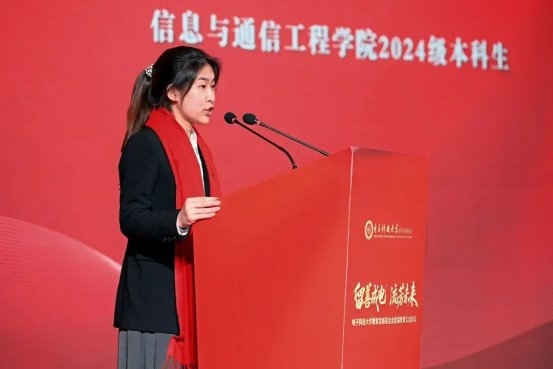 信息与通信工程学院2024级本科生胡晨晞同学作为获奖学生代表发言。她表示,这份奖学金,传递的不仅是物质的支持,更是一种价值观的共鸣,是对于勤奋创新、担当奉献精神的赞赏,是对于胸怀理想、脚踏实地的期许,亦是对成电学子成长之路的温暖陪伴与有力支持。今后将心怀“国之大者”,立志成为以科技之力、创新之智服务社会、贡献国家的时代新人。不辜负宝丰能源董事长党彦宝与社会各界的关爱。