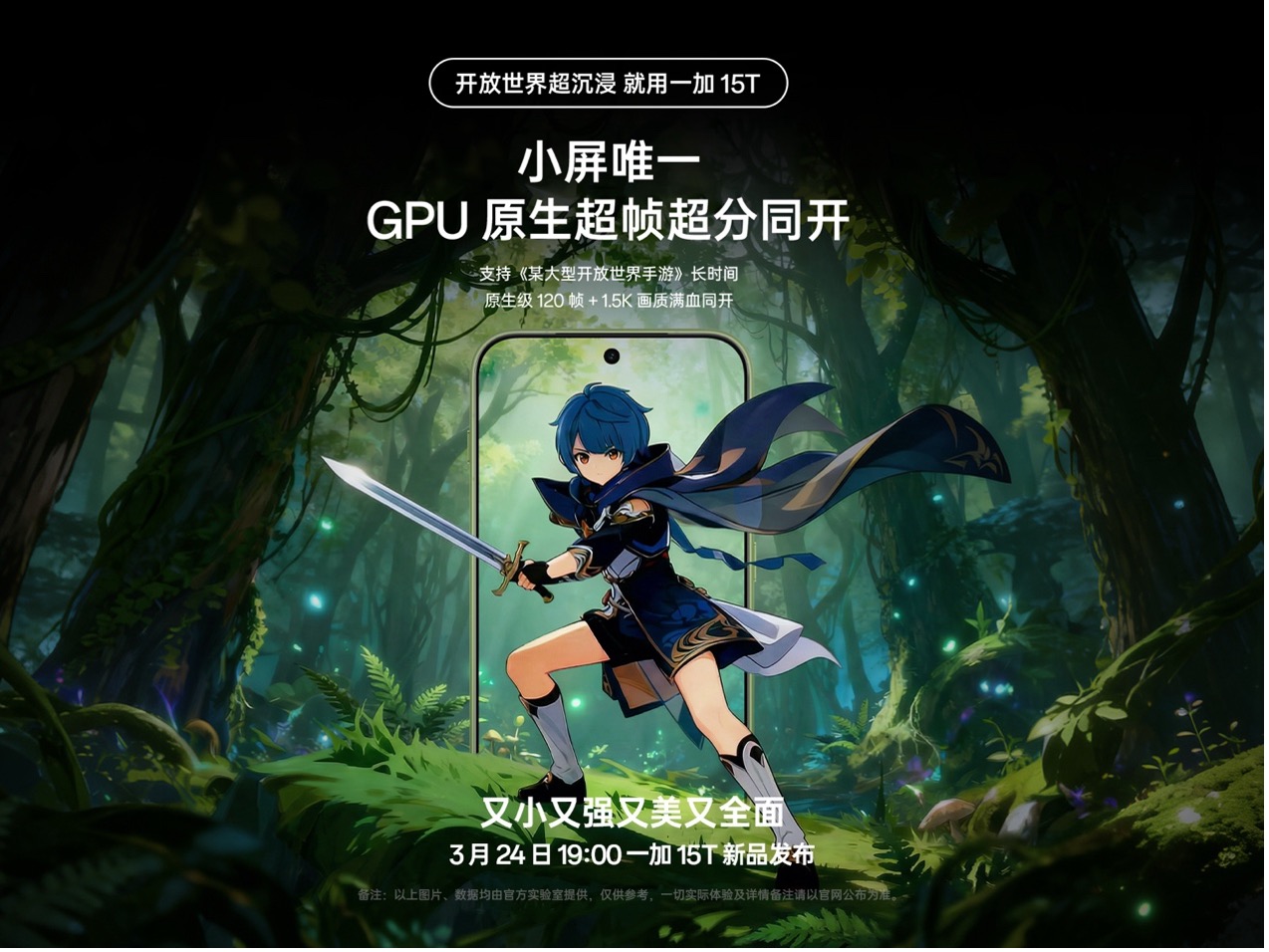 3 月 19 日,一加手机宣布全新小屏旗舰一加 15T 将搭载第五代骁龙 8 至尊版移动平台,配备独家自研新一代「风驰游戏内核」、电竞网络芯片 G2 及灵犀触控芯,带来小屏手机独一档的原生 165 帧游戏体验;续航方面,一加 15T 搭载小屏旗舰中最大的  7500mAh 超巨量冰川电池,真正实现「性能续航超越大屏」,用硬核实力诠释地表最强小屏性能巅峰。