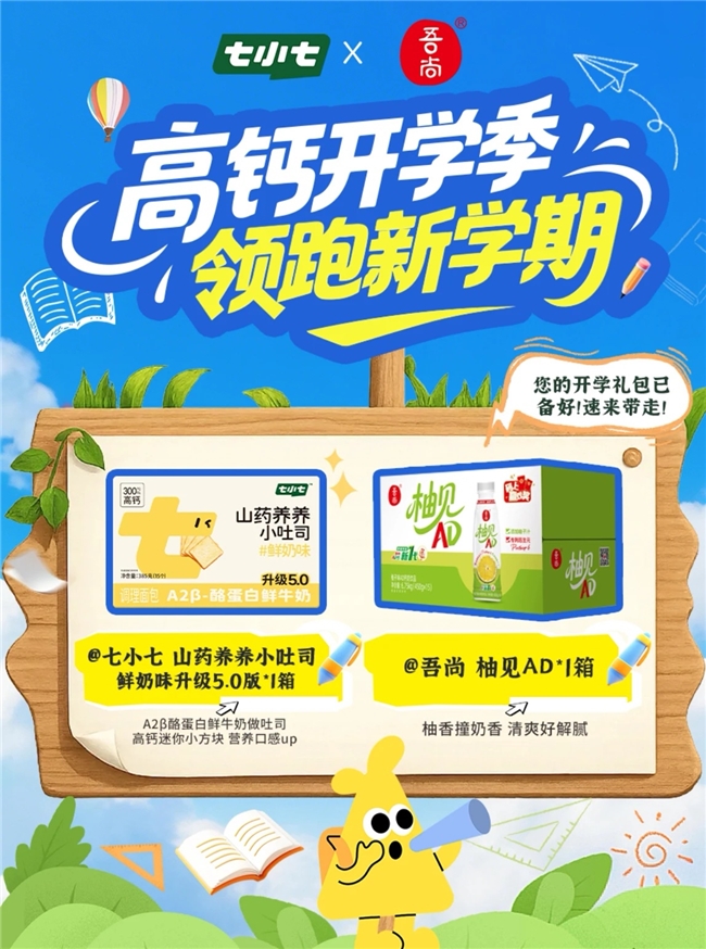 双倍营养,双倍快乐,全部带回家!这次吾尚与七小七强强联名,吾尚精心挑选了两款明星产品,组成“高钙开学能量包”,这是基于对儿童成长需求的深度洞察——用真正健康的食品,陪伴孩子度过每一个成长的关键时刻。